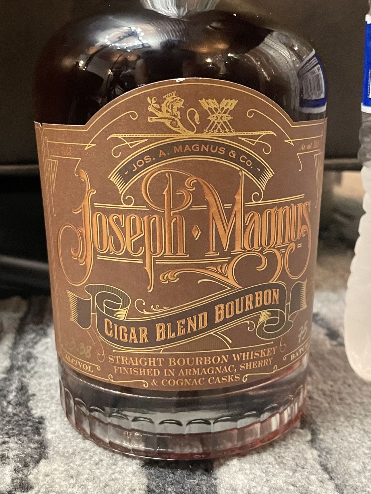Joseph Magnus Cigar Blend Bourbon: With bold aromas of tobacco, spice, leather, vanilla, almonds, and toffee, it gains fruity notes of fig, prune, and dried apricot from its Armagnac cask finish