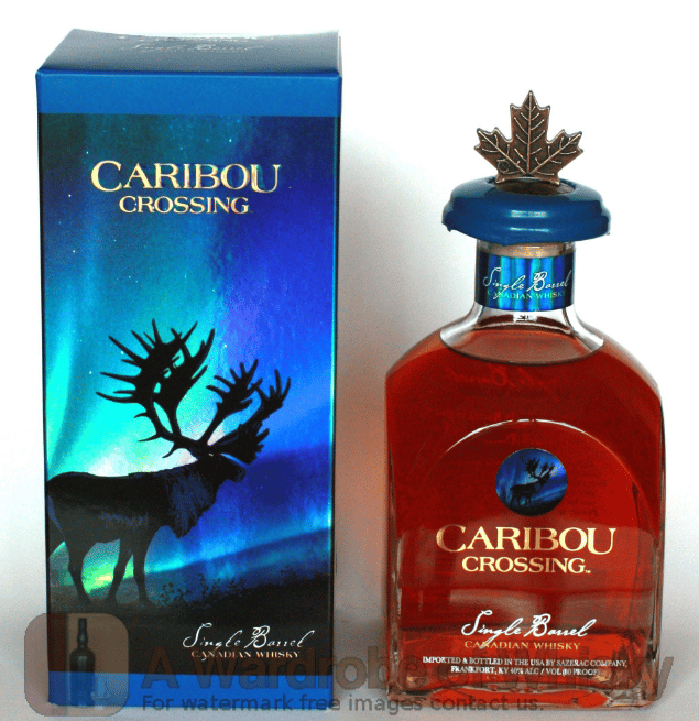 Caribou Crossing: A Canadian single barrel, a premium class of whiskey in which each bottle comes from an individual aging barrel. The nose offers caramel, marshmallow, corn, and light oak, following with soft vanilla, caramel, and a hint of grain.